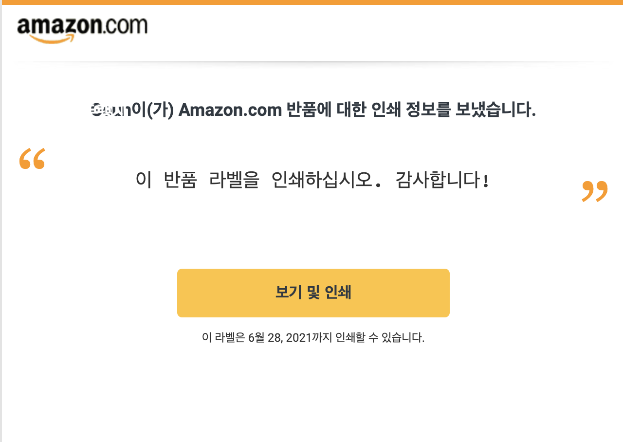 아마존을 통해 환불 신청을 하면 반품 인보이스와 함께 라벨지를 출력해야한다.