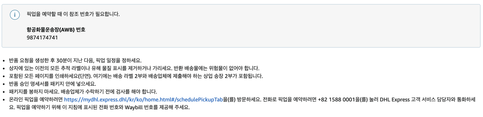 그리고 DHL 픽업을 통해 택배를 다시 보내야한다.