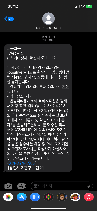 약먹고 정신없이 자다 일어난 아침 Pcr 검사 결과가 문자로 도착해 있었고 역시나 양성이었다.