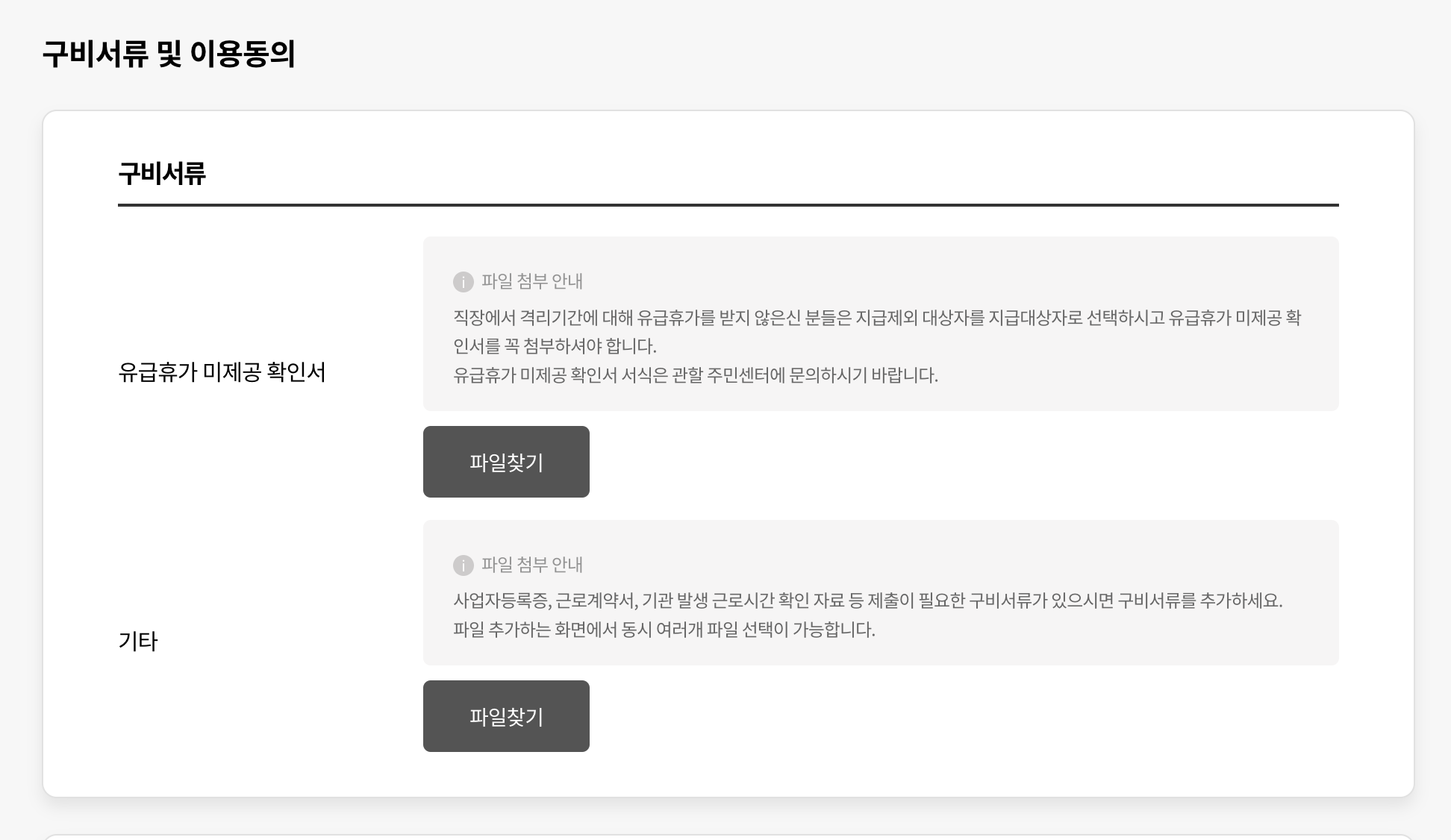 그 다음 성명, 주소, 연락처, 지원금을 받을 계좌번호를 입력하고 그 외에 구비서류를 첨부하면 된다.