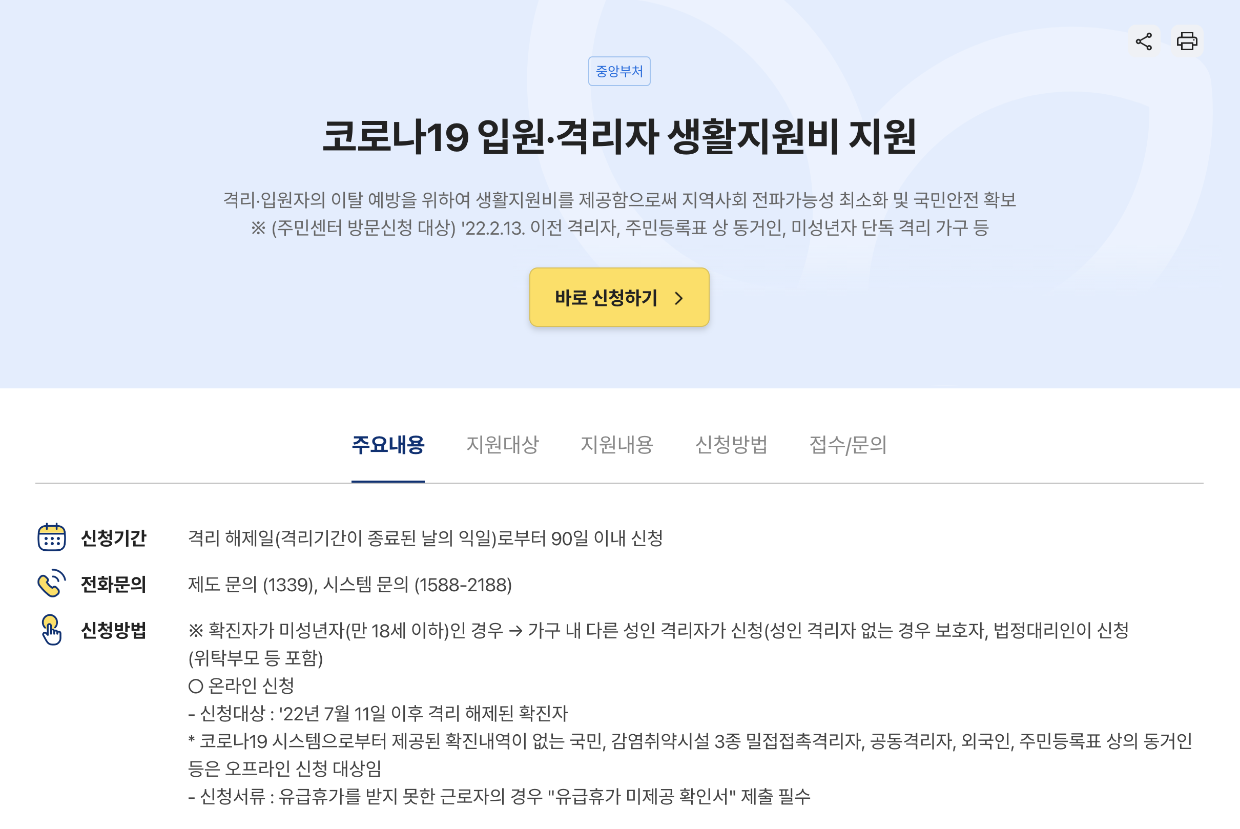 11월초에 걸려버린 코로나. 일주일간의 격리 중에 아직도 지원금 제도가 진행하고 있다는 사실을 알게 되었다!