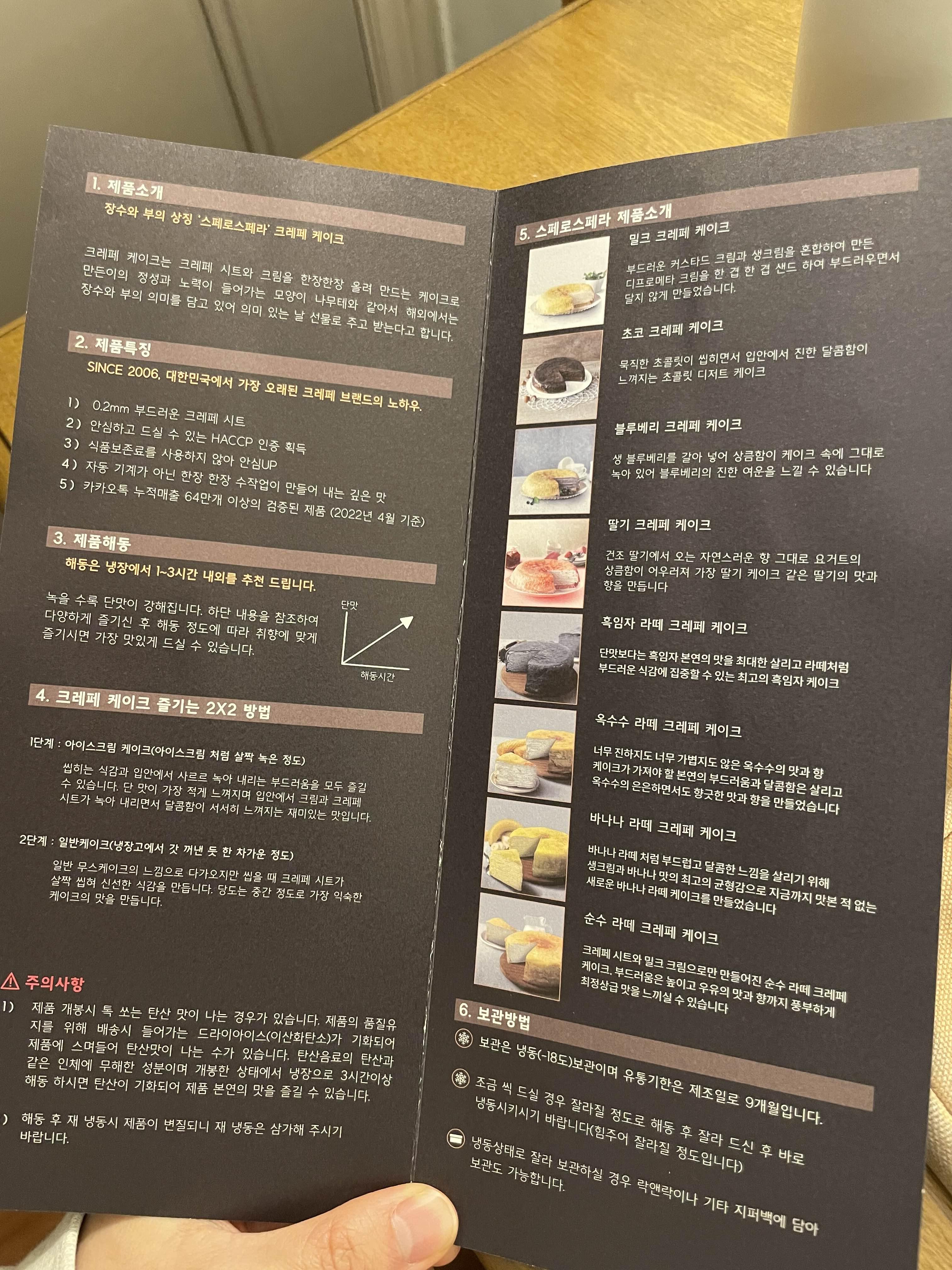 하지만 스페로스페라 크레페케이크는 약간 아이스크림 케이크 느낌으로 먹어도 맛있다는 설명서를 보아서 안심.