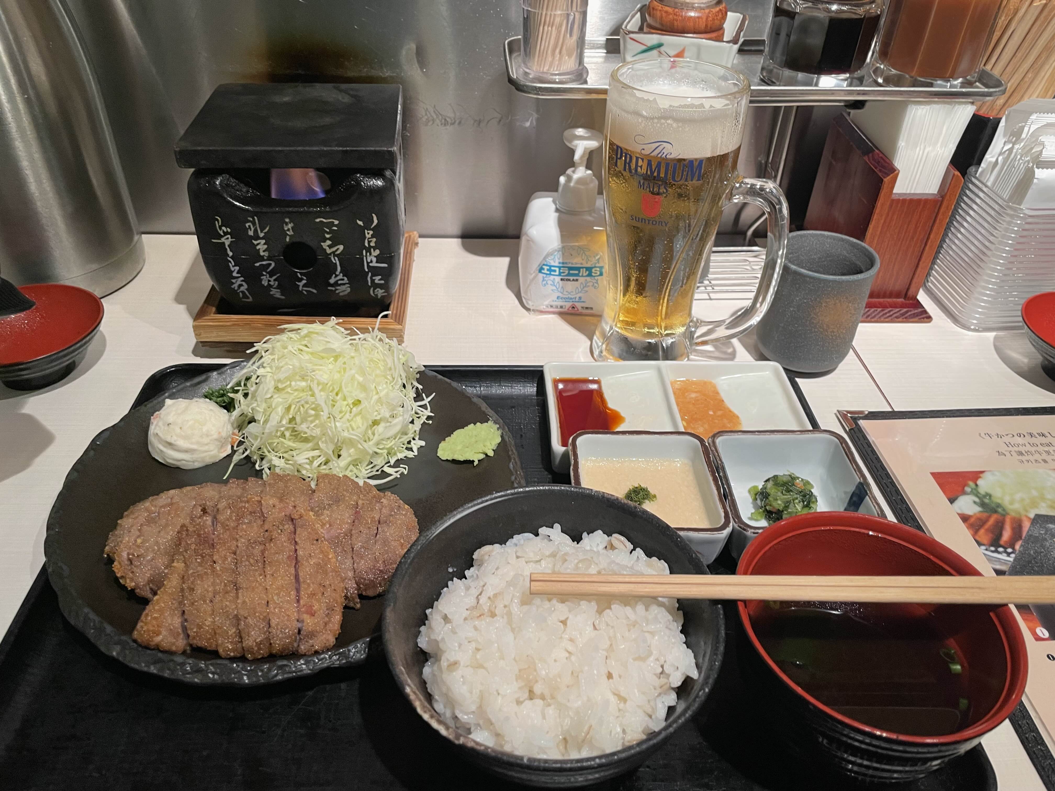 산토리 프리미엄과 즐기는 아사쿠사 규카츠는 상당히 맛있었습니다.