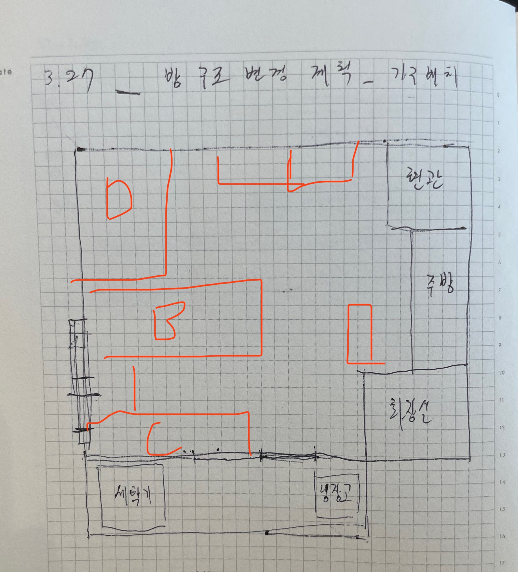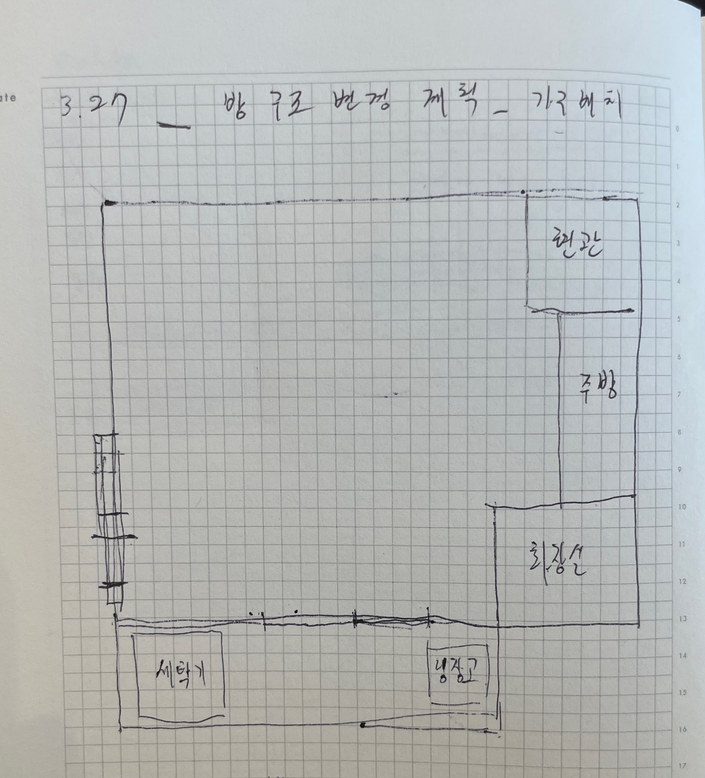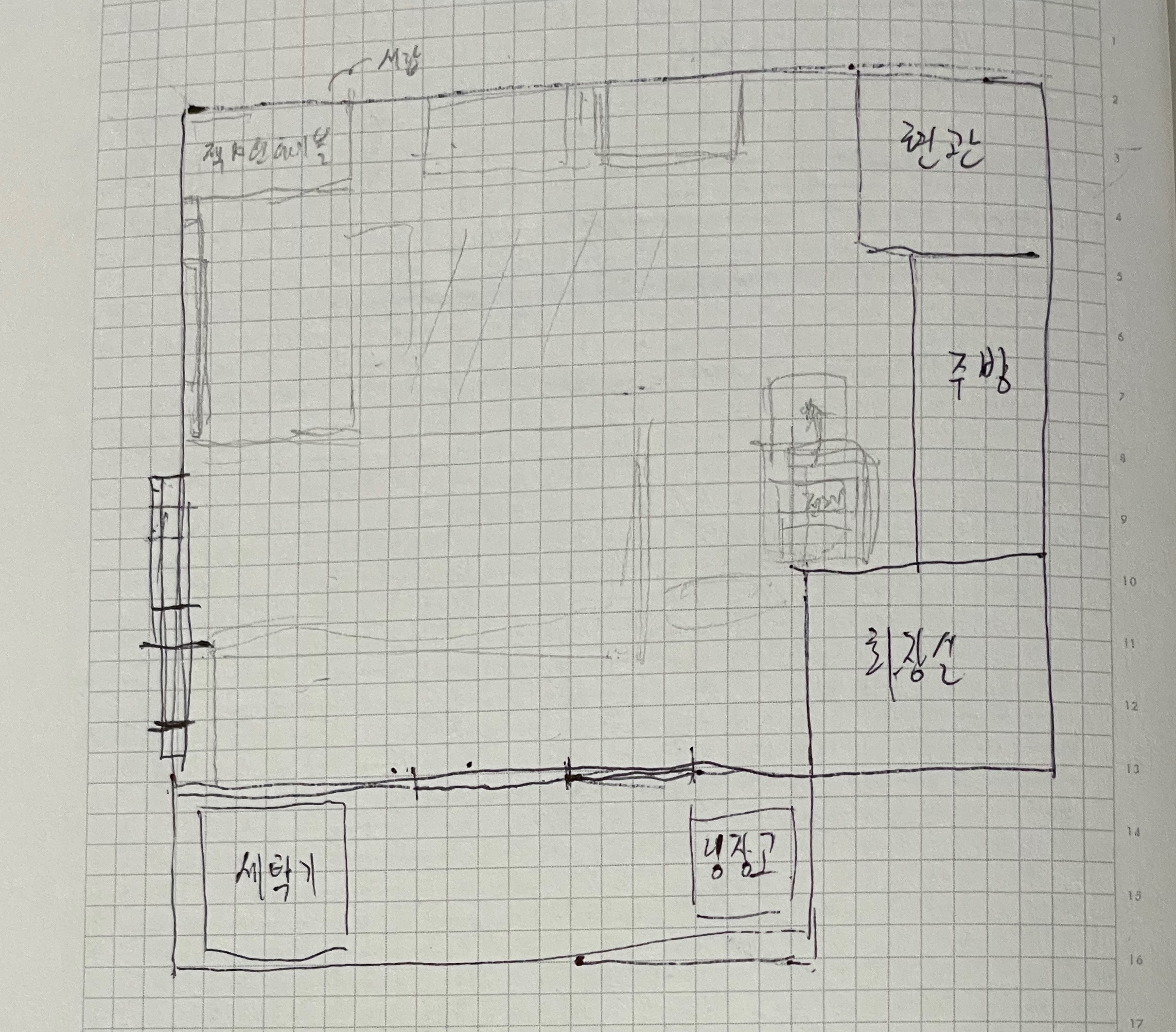 잘 그리는 것도 좋지만 러프하게 방 구조를 그려도 좋다.