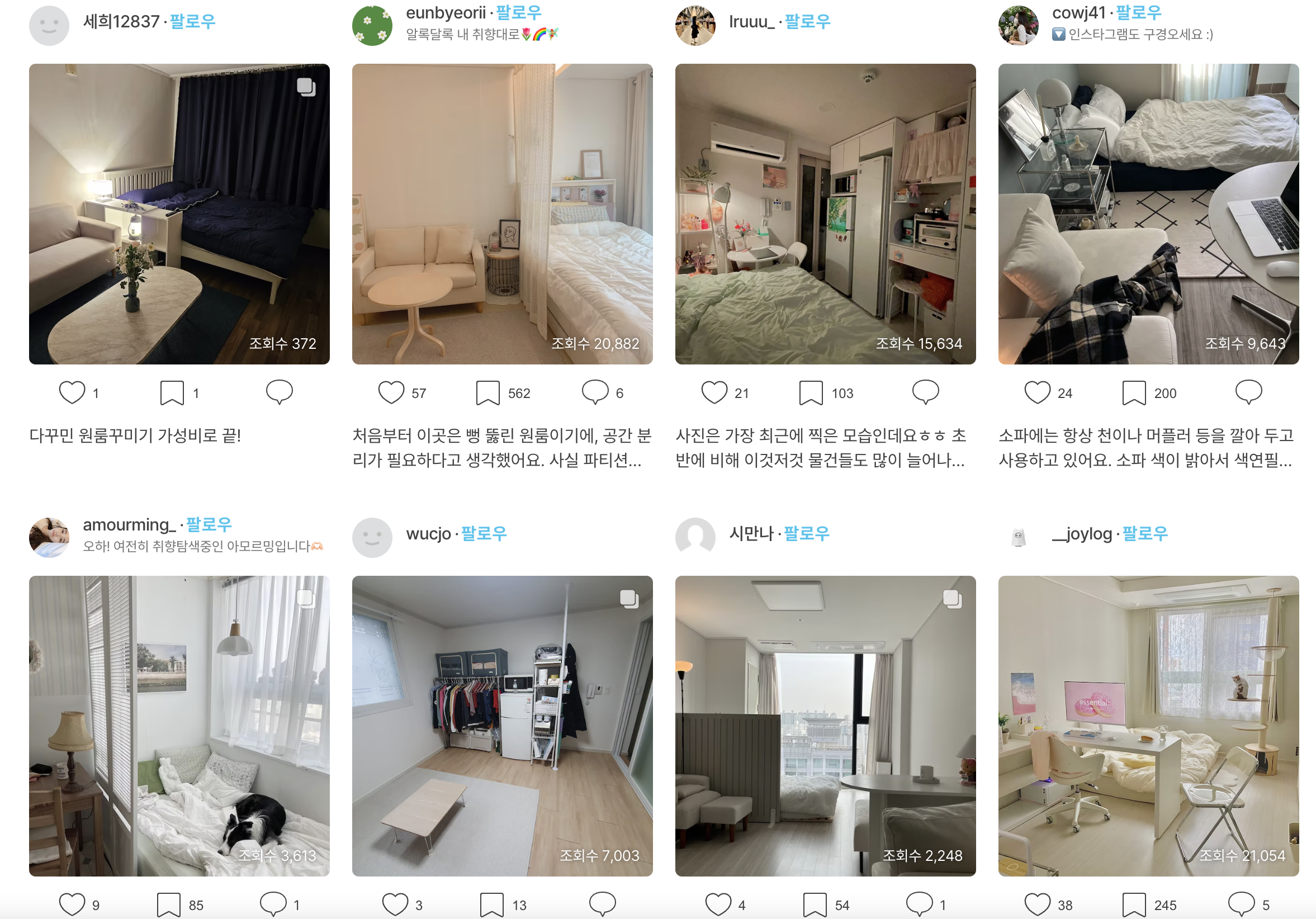 오늘의 집에서 인기가 많은 인테리어 사진을 보면