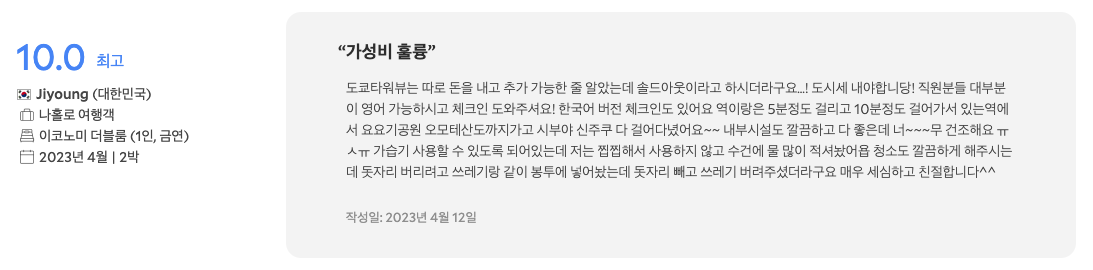 | 일본 숙소 예약, 라쿠텐 트래블에서 호텔 예약 해야하는 이유 3가지 (1) | 2023.09.20 |