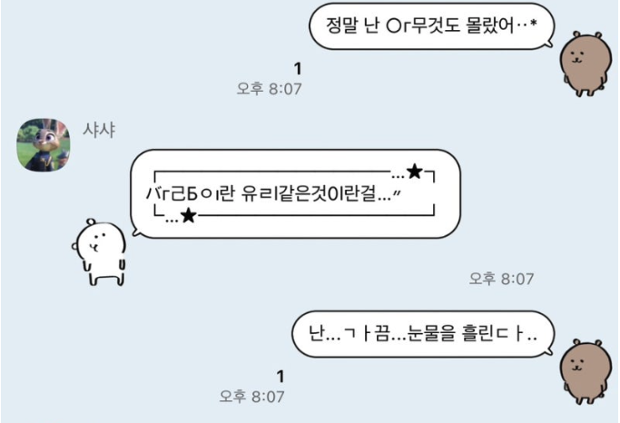 여러분 죄송합니다.. 제가 바보같이 2번째 말풍선 색 조정을 안 해서 색이 다르게 됐더군요😣 -수정 전- ...