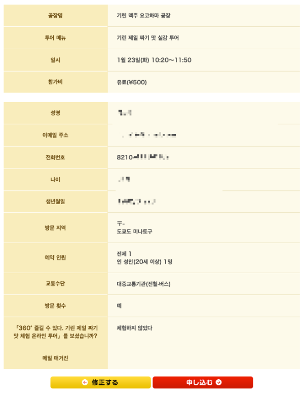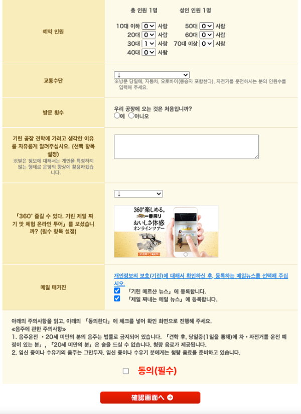 회원가입 없이 편리하게 예약이 가능하니 요코하마 기린 맥주 공장을 방문을 계획중이시라면 꼭 예약하시기 바랍니다.
