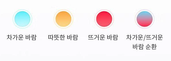 - 온도조절 : 4단, 풍속조절 : 2단, 총 8가지의 바람 조합