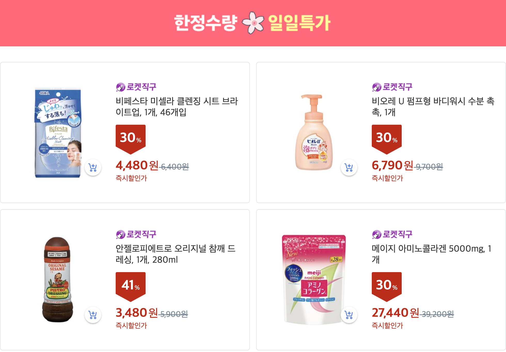 매일 한정수량으로 초특가 세일하는 상품들을 만나실 수 있습니다.