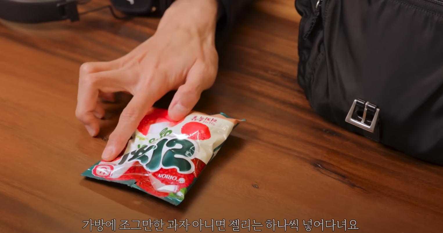 모 방송에서 촬영 후 오리온에서 선물해주신 제품이라고 하는데 가방 안에 젤리 한개씩 있으면 힘나는건 다 비슷한 것 같습니다.