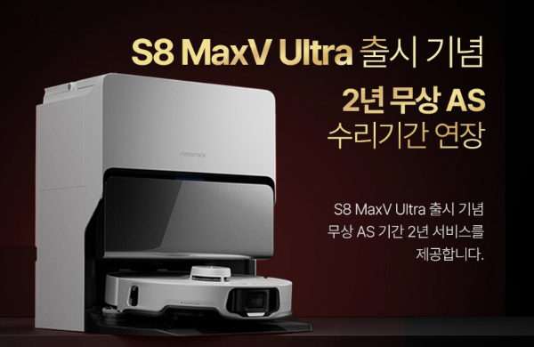 로보락 S8 MaxV Ultra 출시 기념으로 S8 MaxV Ultra 모델 한정으로 무상 AS 기간이 1년에서 2년으로 늘어났습니다.