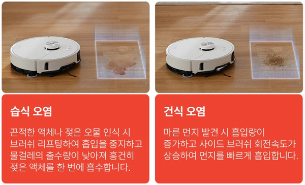 또한 반려동물을 인식하여 피하거나 반려동물 용품 주변을 더 세밀하게 청소하는 등의 세세한 관리도 가능합니다.