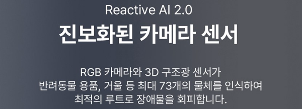 센서 방식 : LDS + reactive AI 2.0 장애물 인식 센서 (3D 구조광 + RGB 카메라)