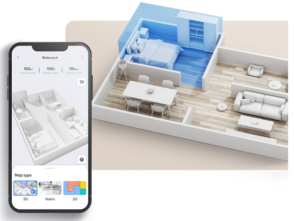또한 전용 로보락 앱을 통해 매핑을 확인하고 수정하여 더 스마트한 청소를 가능하게 합니다.