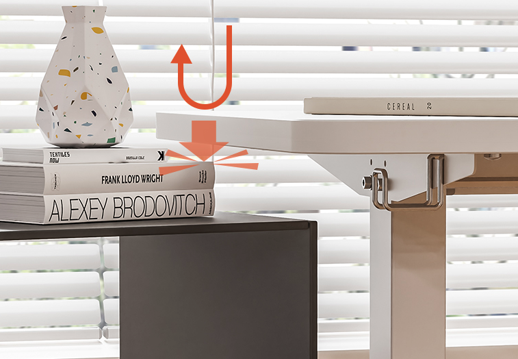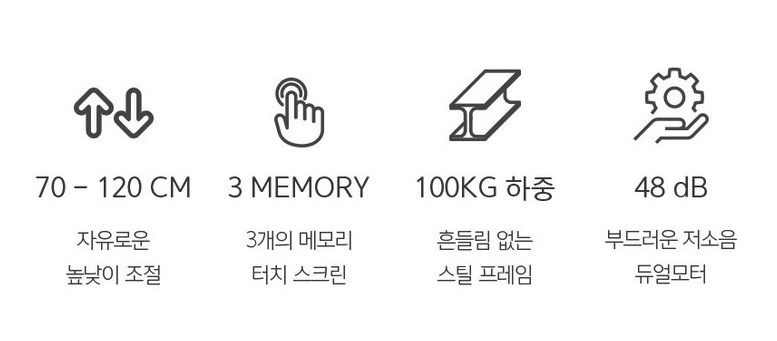 높이 기억 최대 2개 가능, 전용 앱을 통한 높이 설정 가능, 충돌 방지 기능 & 롤백 기능 O, 데스커 및 퍼시스 주변 가구 활용 가능, 기사 배송 및 설치