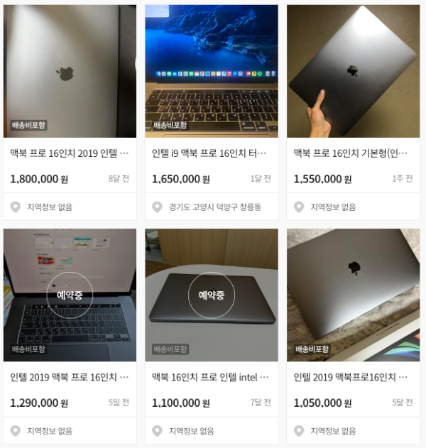 3대의 노트북과 맥북 프로와의 차이는 바로 중고 가격 방어가 잘된다는 점이었습니다.