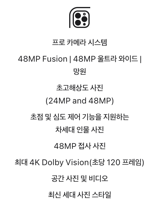 기존과 같은 트리플 렌즈 구성이며 광각은 48mph 퓨전 카메라