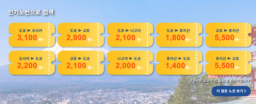 사이트 메인을 보시면 인기 노선을 편하게 검색할 수 있습니다.