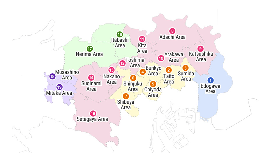시부야, 신주쿠, 도쿄역, 이케부쿠로 등 주요 지역