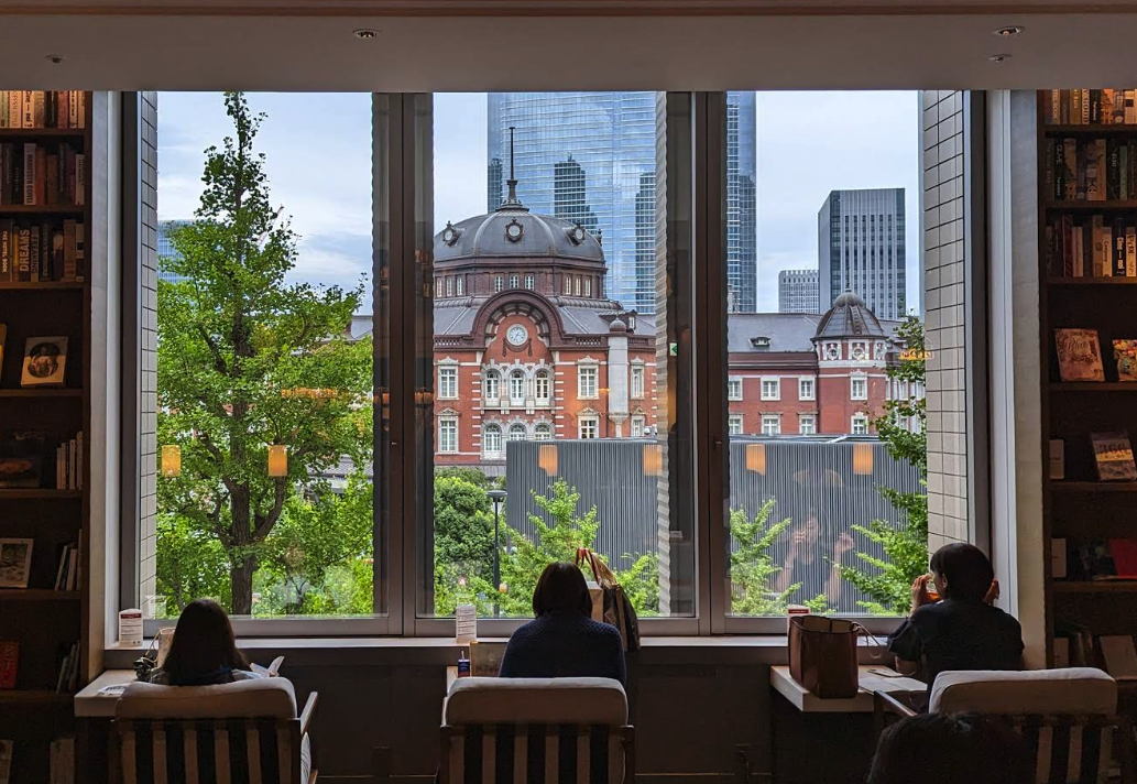 츠타야 쉐어 라운지로 시간제 유료로 이용 가능하며, 마루노우치 광장을 내려다 볼 수 있어 도쿄역에서 조용하고 감도 높은 시간을 보낼 수 있습니다.