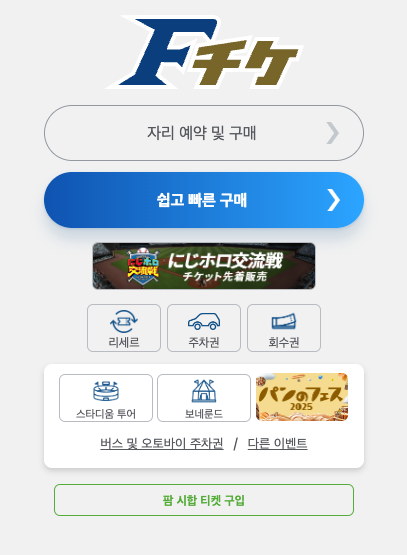 - 홋카이도 닛폰햄 파이터스 공식 티켓 예매 페이지에서 가능