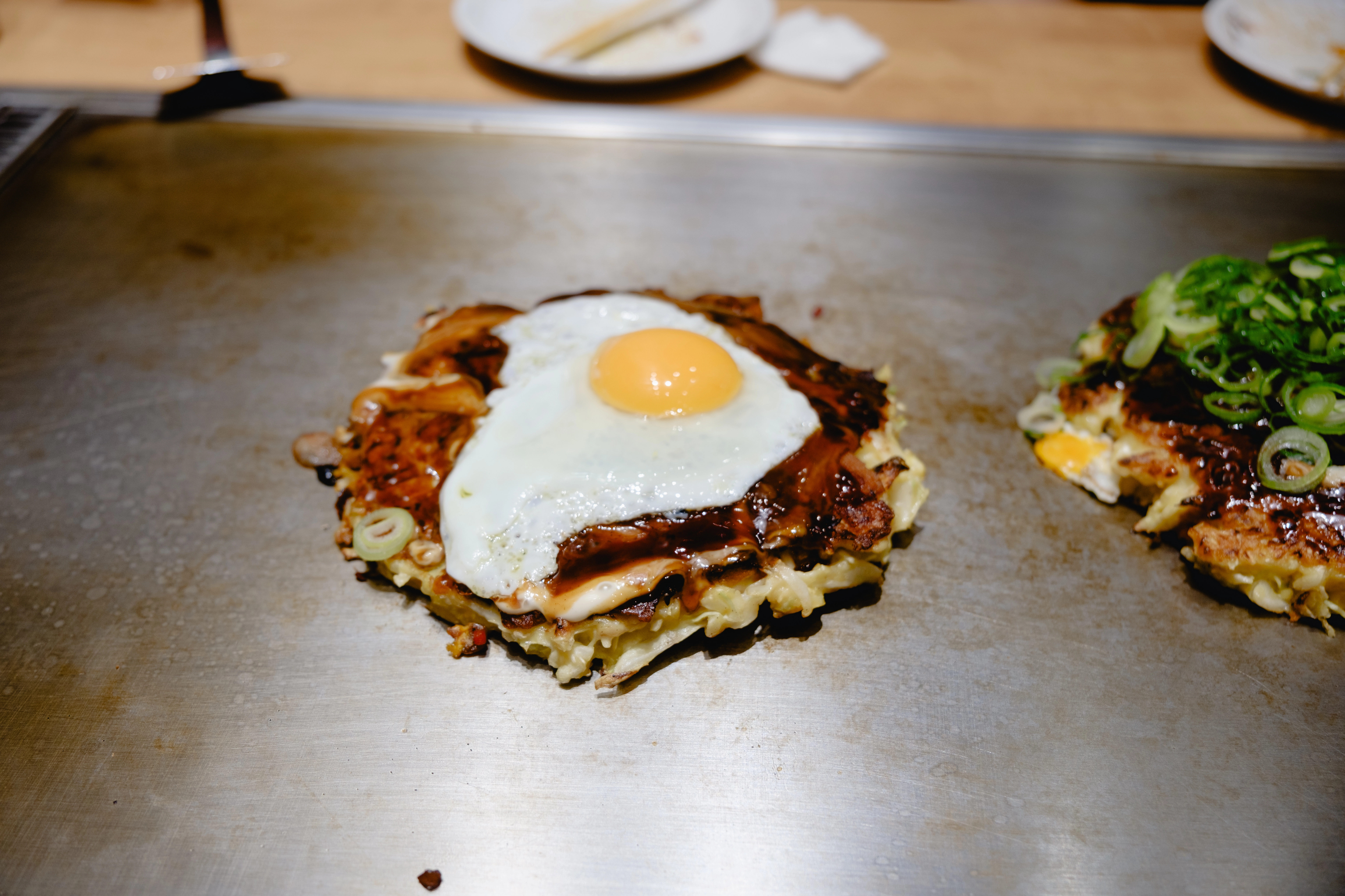 저희는 부타타마 (돼지고기 오코노미야키)와 스지야키 (소힘줄 오코노미야키)를 주문했습니다. 부타타마 오코노미야키엔 타마고 (계란) 토핑을 추가해서 더욱 담백하게 즐겼습니다.