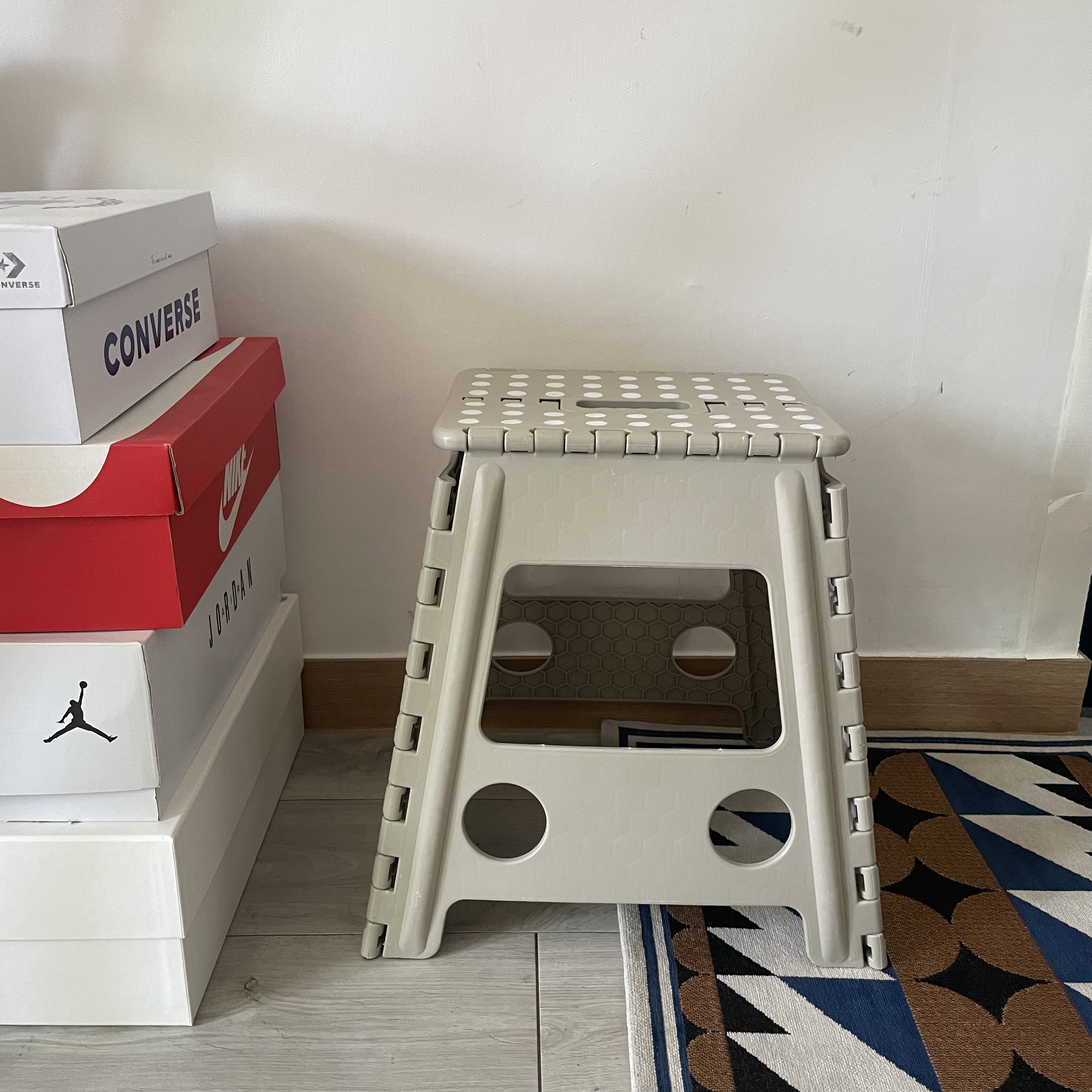 실제로 저의 경우엔 작은 폴딩 스툴을 현관 앞에 두어 필요시에만 펼쳐 사용하는 중입니다. 공간의 크기에 따라 다양한 종류의 의자를 사용할 수 있겠죠?