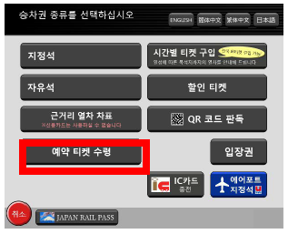 2. 무인 발권기에서 예약 (일부 역만 가능)