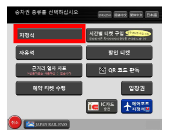 1. 지정석 발권기 우측 상단에서 한국어를 선택합니다.