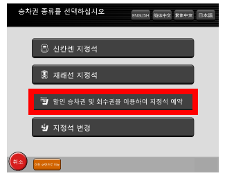 2. 지정석 선택 후 - 할인 승차권 및 회수권을 이용하여 지정석 예약 선택