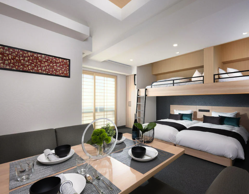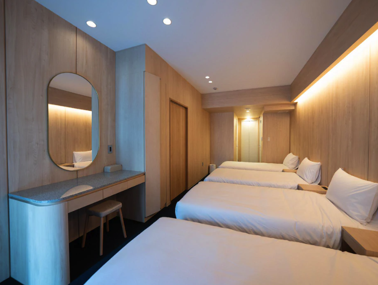 가족 단위 여행자나 친구 단체 여행자들에게 특히 추천하고, 저도 일본 여행 중 가장 많이 이용한 호텔입니다. 4인 이상 숙박 가능한 객실 타입이 다양하며, 실내에 간이 주방과 넓은 거실 공간이 있어 일상처럼 편안하게 쉴 수 있습니다.