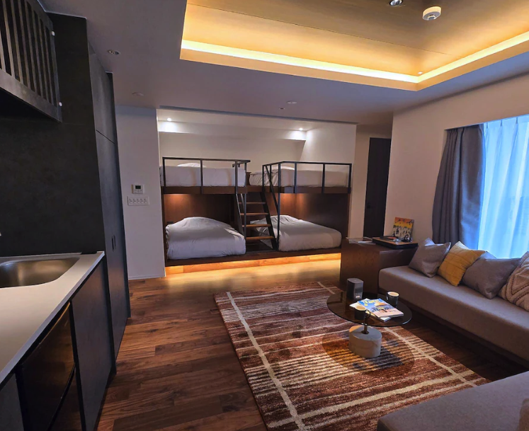 가족 단위 여행자나 친구 단체 여행자들에게 특히 추천하고, 저도 제일 많이 이용한 미마루 호텔입니다. 4인 이상 숙박 가능한 객실 타입이 다양하며, 실내에 간이 주방과 넓은 거실 공간이 있어 일상처럼 편안하게 쉴 수 있습니다.