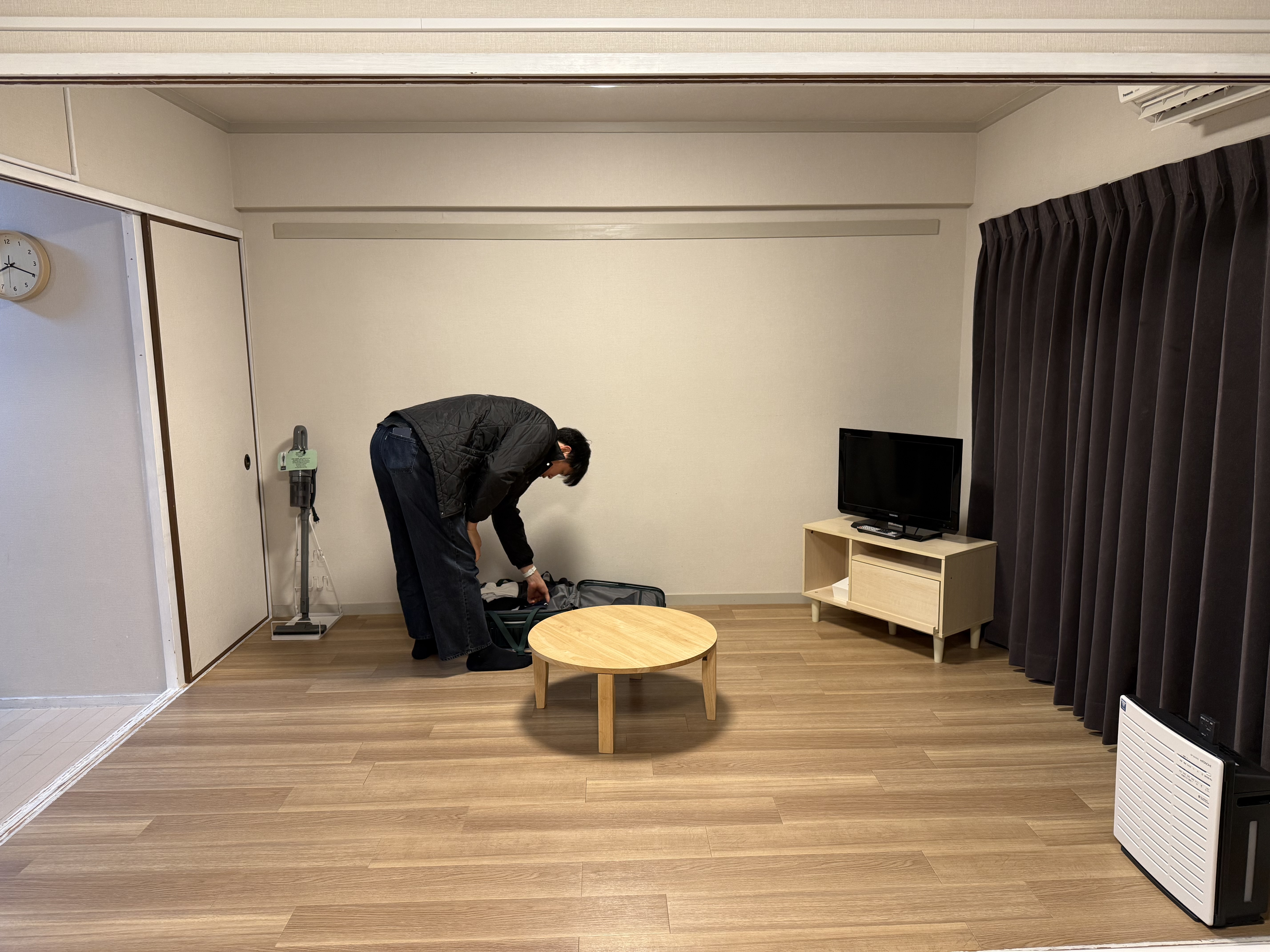 침대는 트윈 배드 2개, 요이불 세트 3개가 구비되어 있어 5인 가족이와도 충분한 숙소였습니다. 침대 맞은편 거실에서 저희는 주로 음식을 먹으며 하루를 마무리 지었습니다.