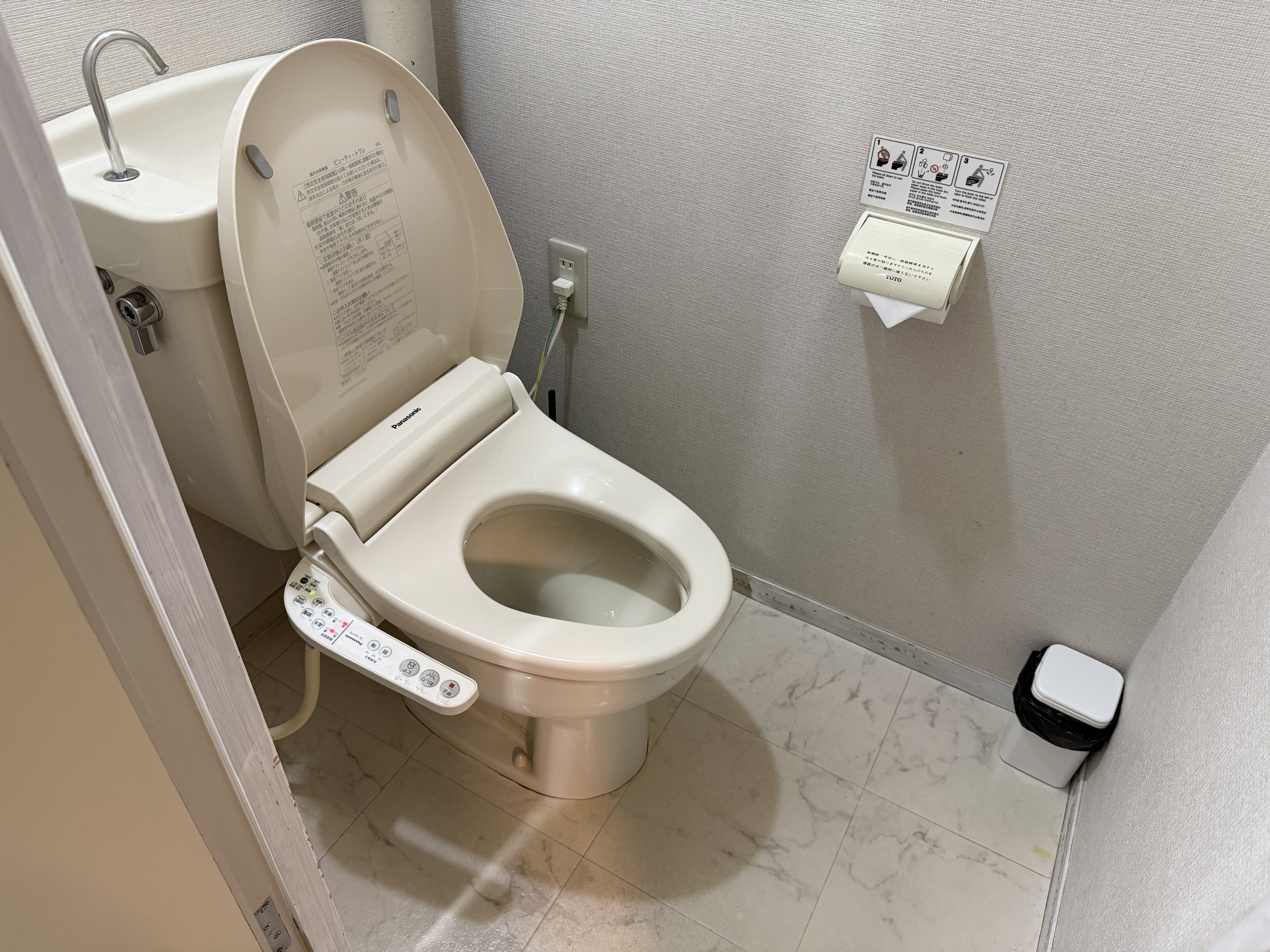 또한 객실 내부에 보유한 어메니티는 샴푸, 트리트먼트, 바디 및 핸드 워시이며 그 외의 어메니티는 리셉션 옆에서 챙길 수 있습니다. 잠옷은 별도 300엔을 지불하여 대여할 수 있습니다.