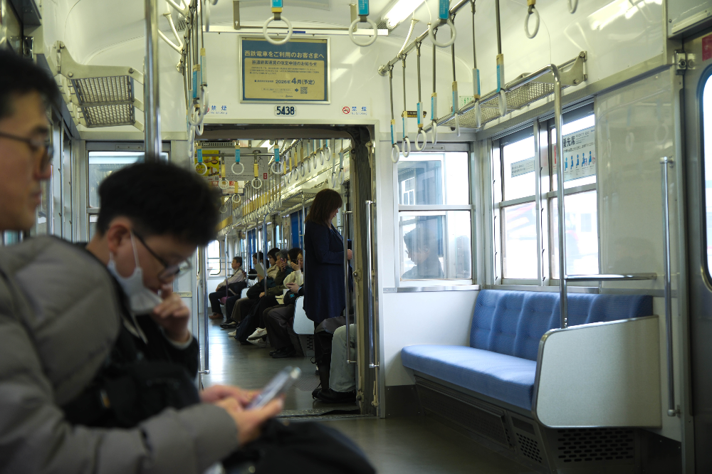 급행 치고 느리지만 감성은 넘치는 텐진오무라 열차 안