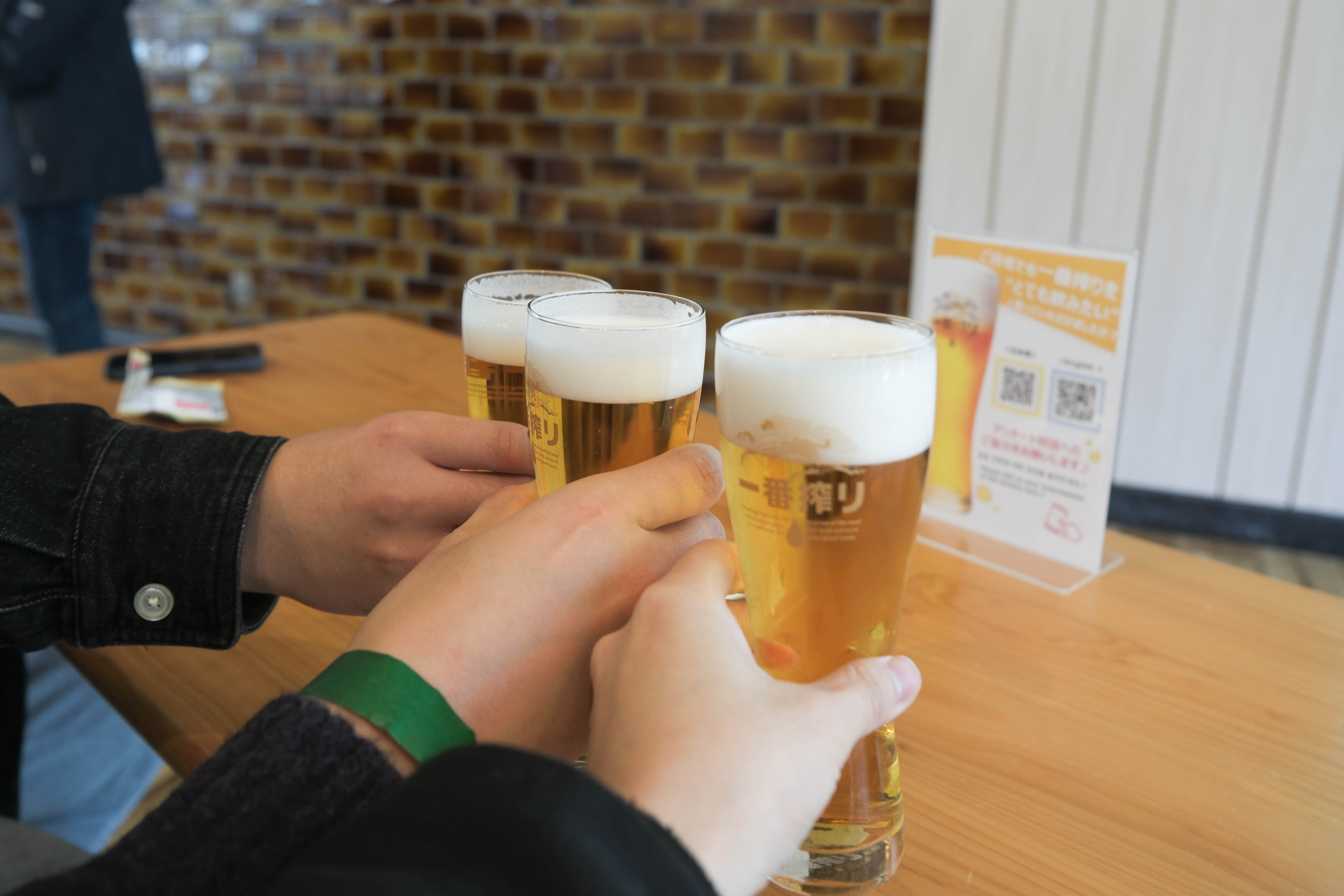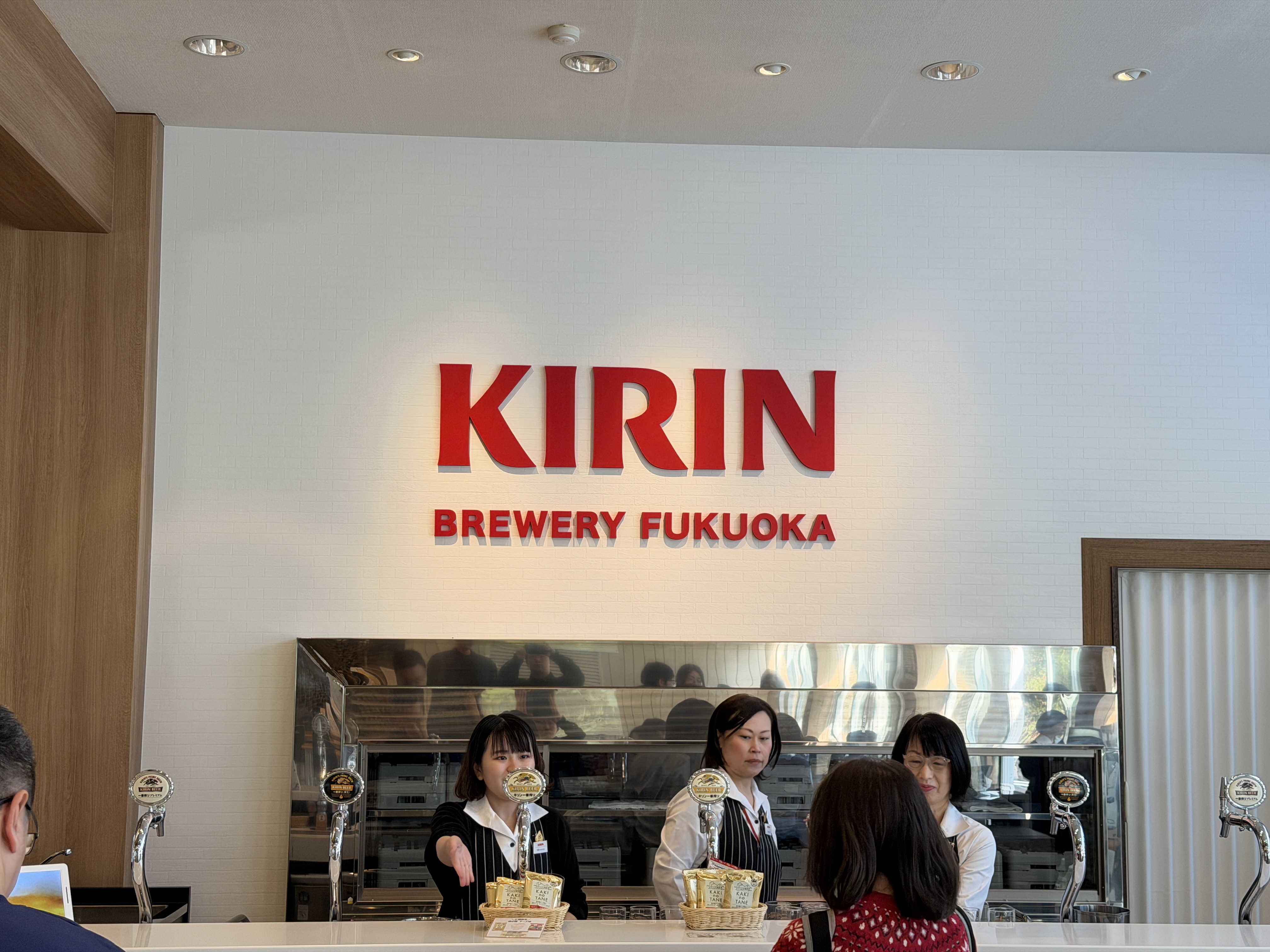 기존에 갔었던 맥주 공장들은 첫잔을 들고 자리에 앉으면 3가지 맛이 담긴 샘플러를 직접 가져다 주었는데요, 후쿠오카 기린 공장은 직접 가서 원하는 맥주를 2종류 말씀하셔야합니다. 그럼 눈 앞에서 잔에 가득 따라주십니다.