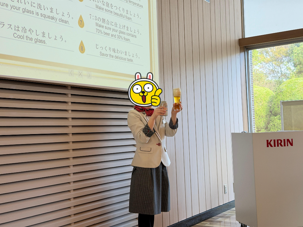 또한, 기린 맥주를 전용잔에 올바르게 따르는 법에 대한 시연을 보여주신 것도 요코하마 공장과는 다른 점이었습니다.